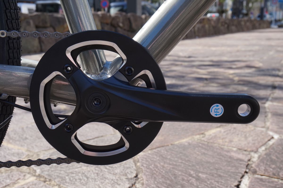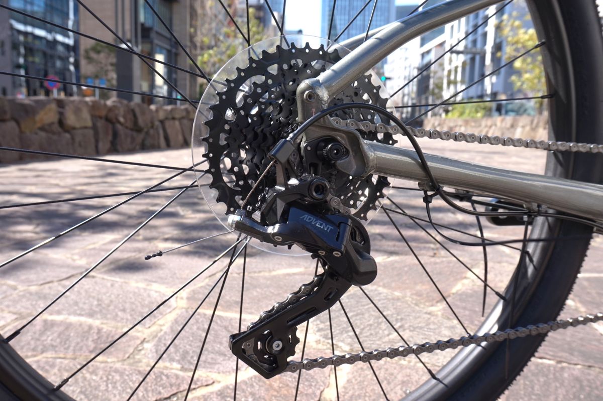 ギアはものすごく大きいですが、前側に変速がついていないので、1系統のシフトチェンジで軽いギアから重くて速く走れるギアまでカバーされています。