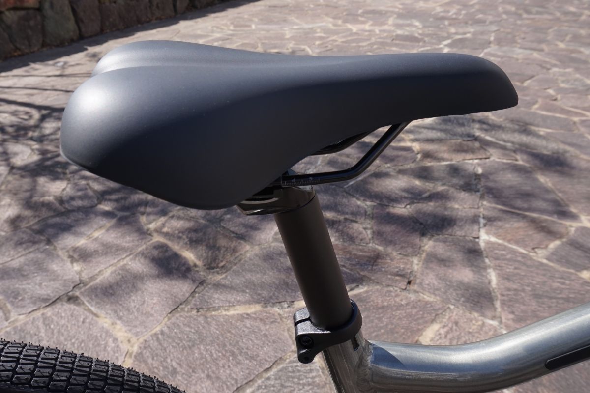 極太のタイヤで走行安定性とクッション性があり、比較的高いハンドル位置と、幅広でクッションのあるサドルで楽に乗車できます。