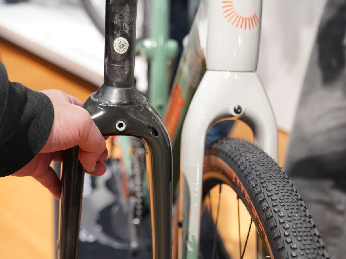 ただしLefty Oliverに合わせたタイヤクリアランスは700×47ミリのタイヤに最適化されており、あまりにも高さのあるタイヤは取り付けられませんのでご注意ください。