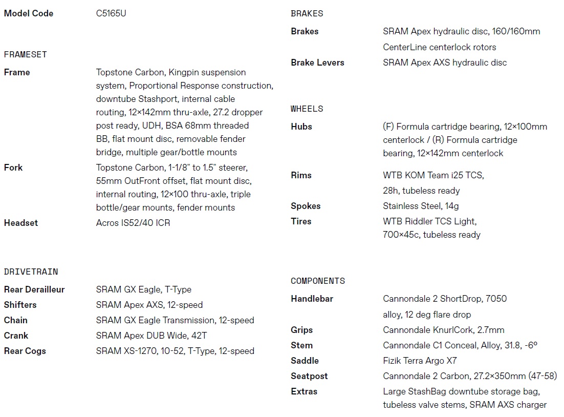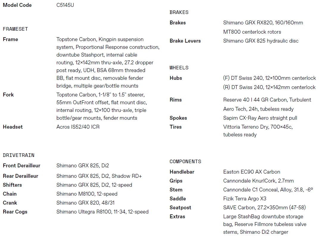 2018年には、初のグラベルロードバイクである、アルミフレームの『TOPSTONE』(第1世代)が登場します。この頃日本でも急速にグラベルライドが注目されつつあり、当時はラインナップが充実したJAMISのRENEGADEシリーズが席捲していたこともあって、キャノンデールのグラベル本格参入はちょっと遅い印象でした。