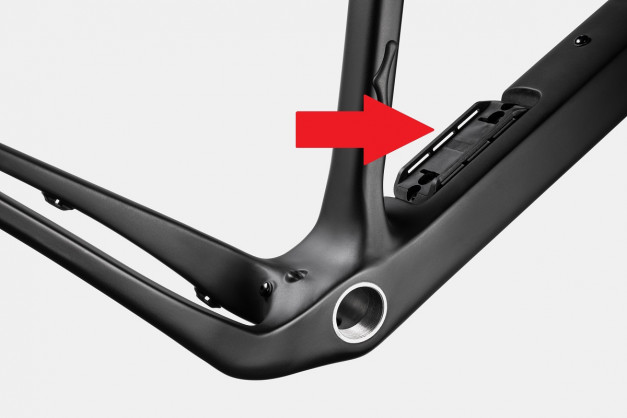 待望のフレーム内収納が実現。専用のスタッシュバッグに入れてチューブや工具をダウンチューブ内に収めることができます。