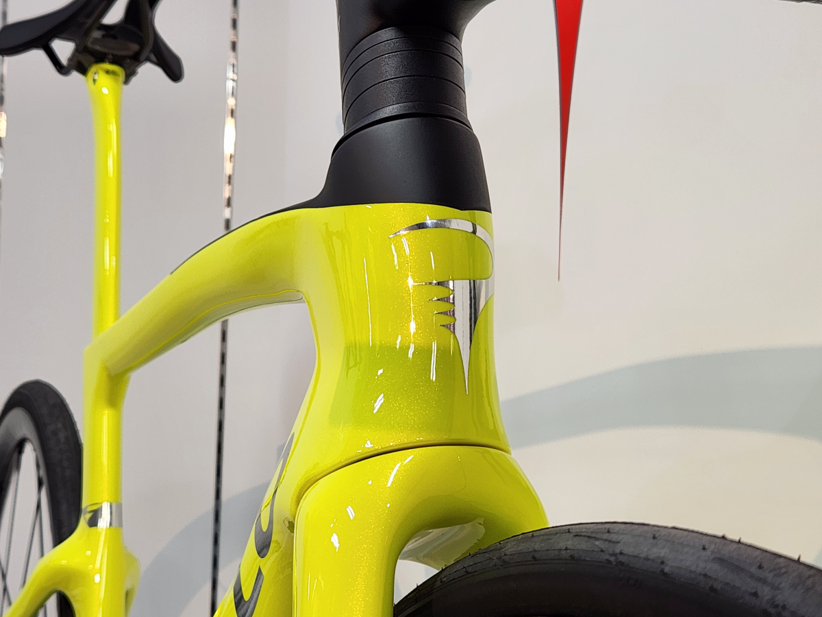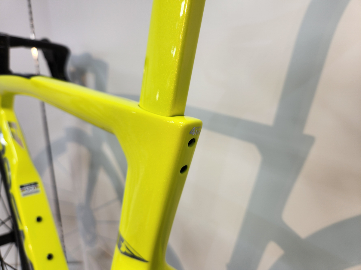 旧型のDOGMA Fよりもヘッドチューブの幅が8mm細くなり空気抵抗、重量ともに改善されています。