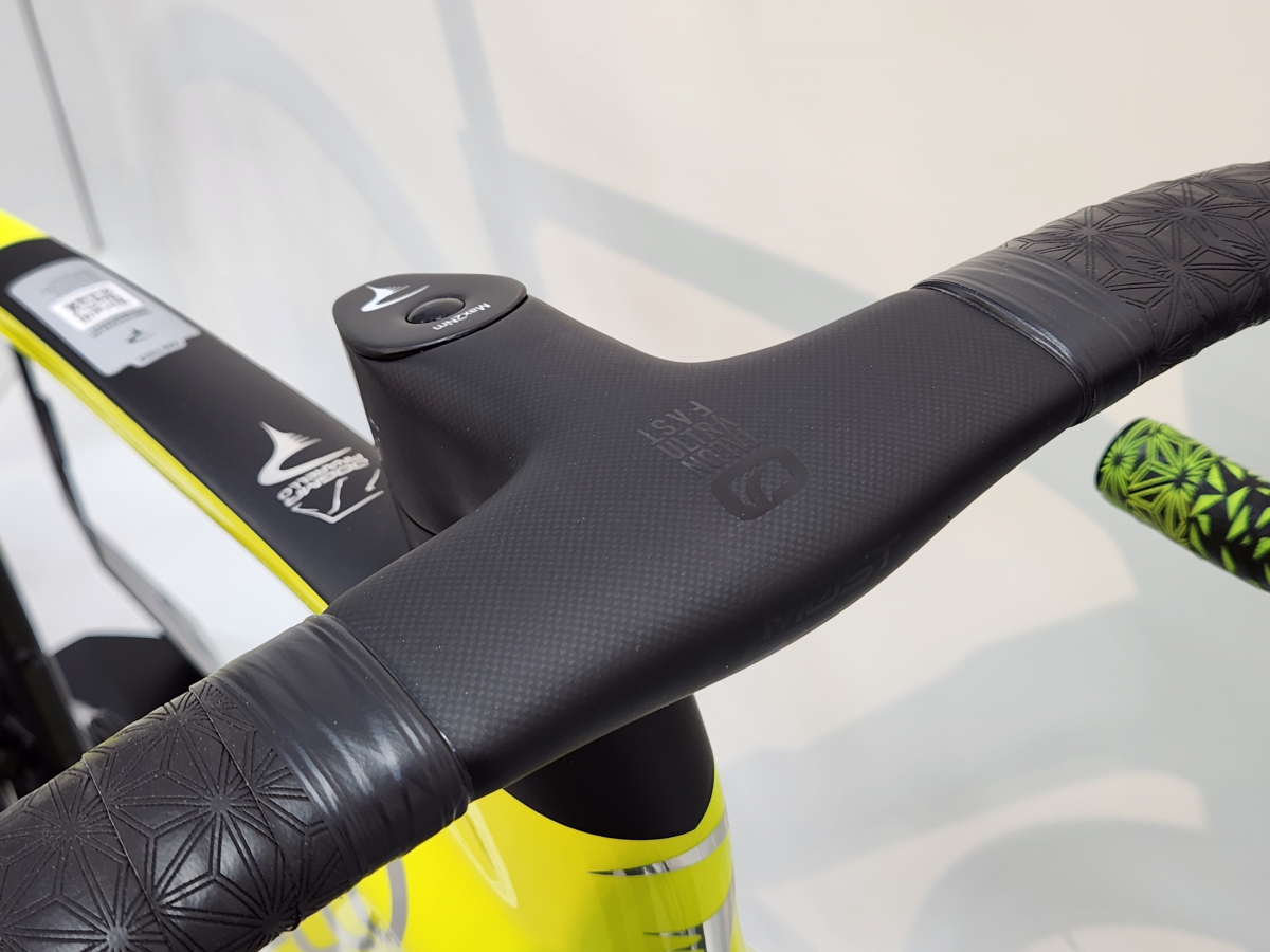 ヘッドチューブの幅が8mm細くなった新型DOGMA に合わせて、新設計されており、100gの軽量化、空力性能が向上、またハンドルのフレア角度量が4℃から7℃に広がり、ライダーがどこを握っても最適なエアロポジションを取れるように設計されています。