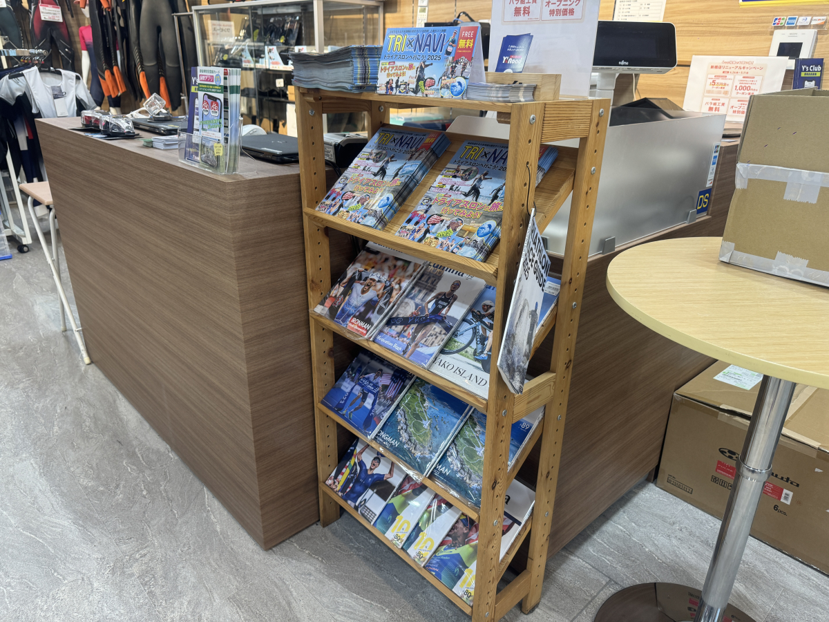店内奥の階段を登っていただくと、1Fのトライアスロン館に出ます!