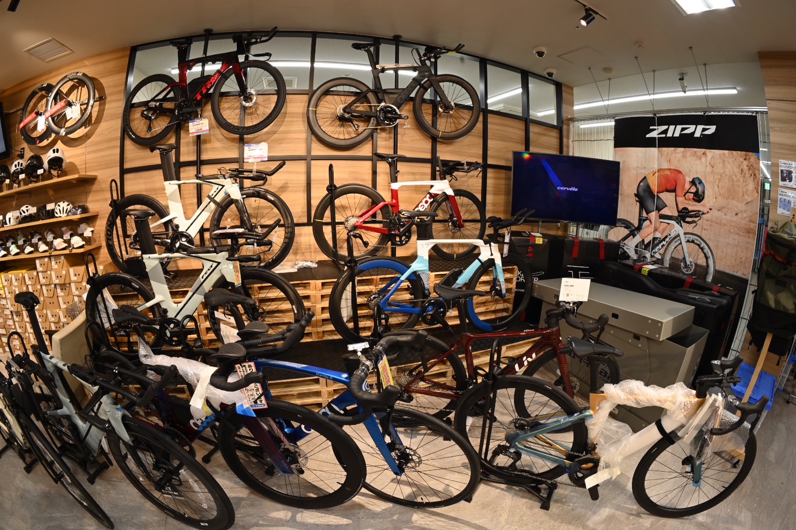 元々の新橋店の幅広いラインナップに加えてお茶の水店のマニアックなTTやトライアスロンバイクなどが加わり、国内でも有数の大型ショップとなったと思います!