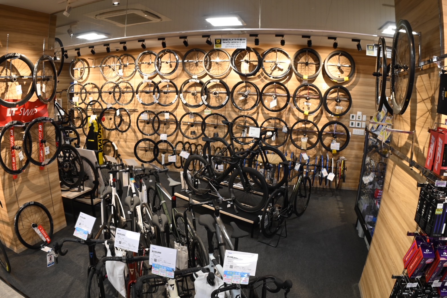 そしてコチラはフロアの中央に位置する、ミドルグレード以上のロードバイク&ホイールコーナーです!