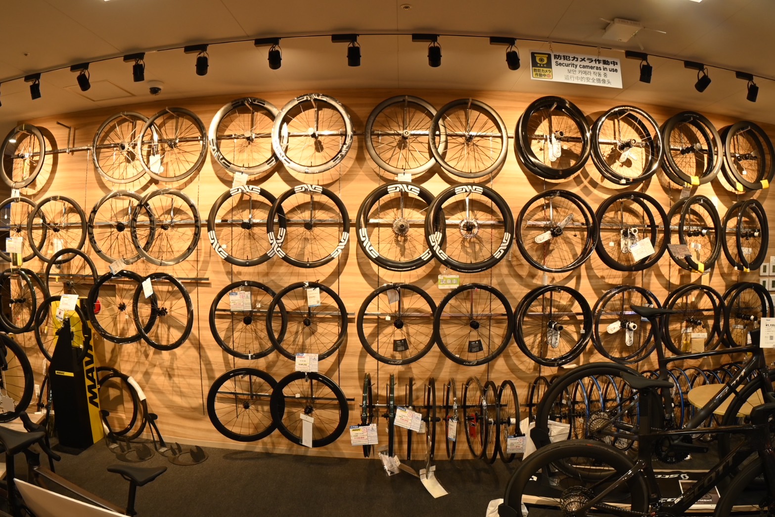 圧巻の光景ですね!これだけのカーボンホイールが展示されている売り場は中々無いとおもいます!!!