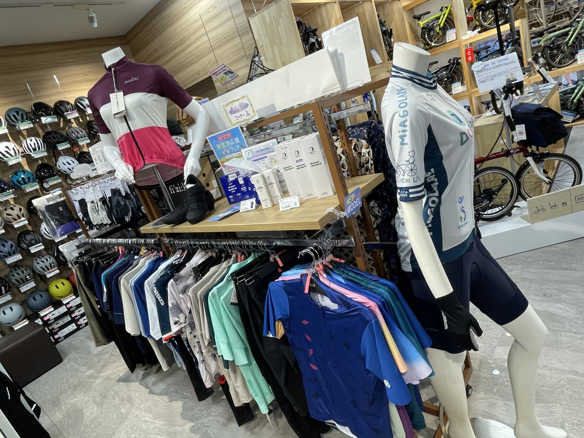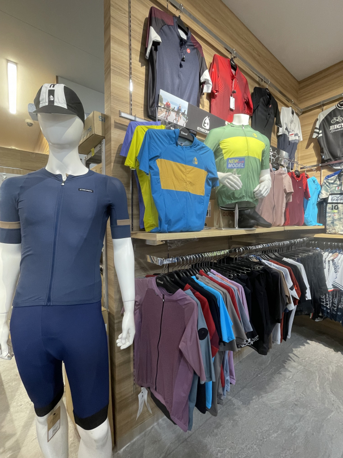 サイクルウェアコーナーも新たな商品とブランドを多々導入し、より幅広くお客様にご提案できるようになりました。