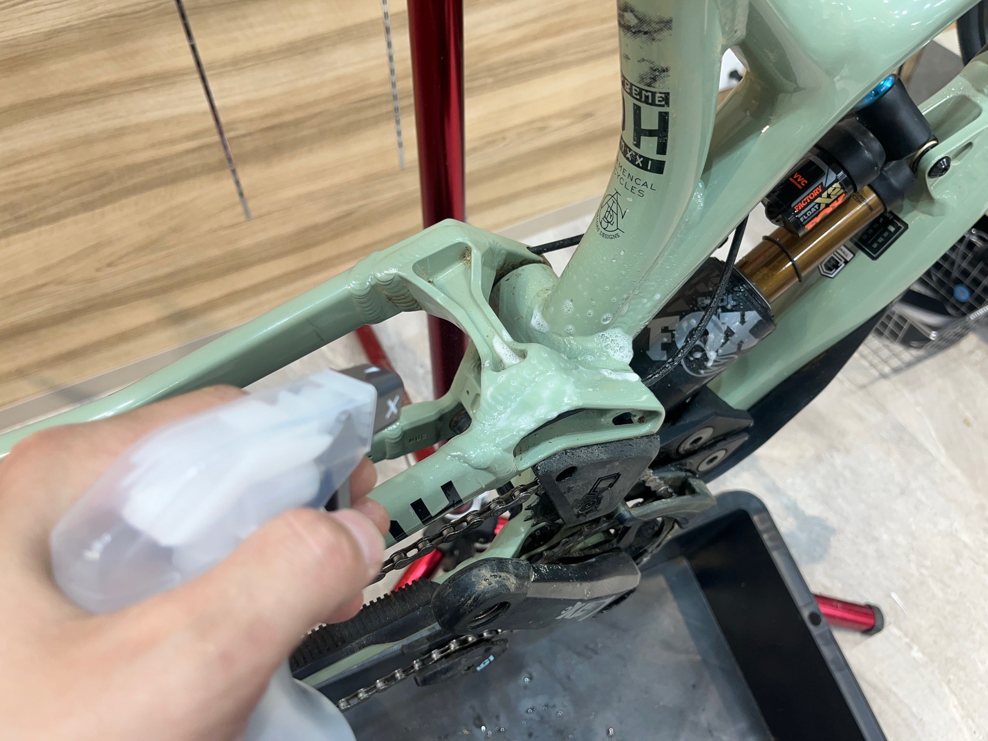 今回はマウンテンバイクで汚れが酷いので水を使いましたが、ロードバイク等でしたら水を使わず、ゼロフィニッシュだけでふきあげても綺麗にもできますので、是非お試しください!