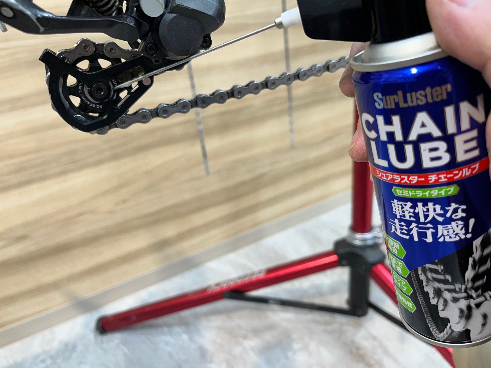 チェーンオイルですが、そういった使い方をしても全く問題ありませんので、気になるところに塗ってあげましょう。(ブレーキやタイヤなど塗ってはいけない箇所もありますので、気になる方はスタッフまでお尋ねください。)