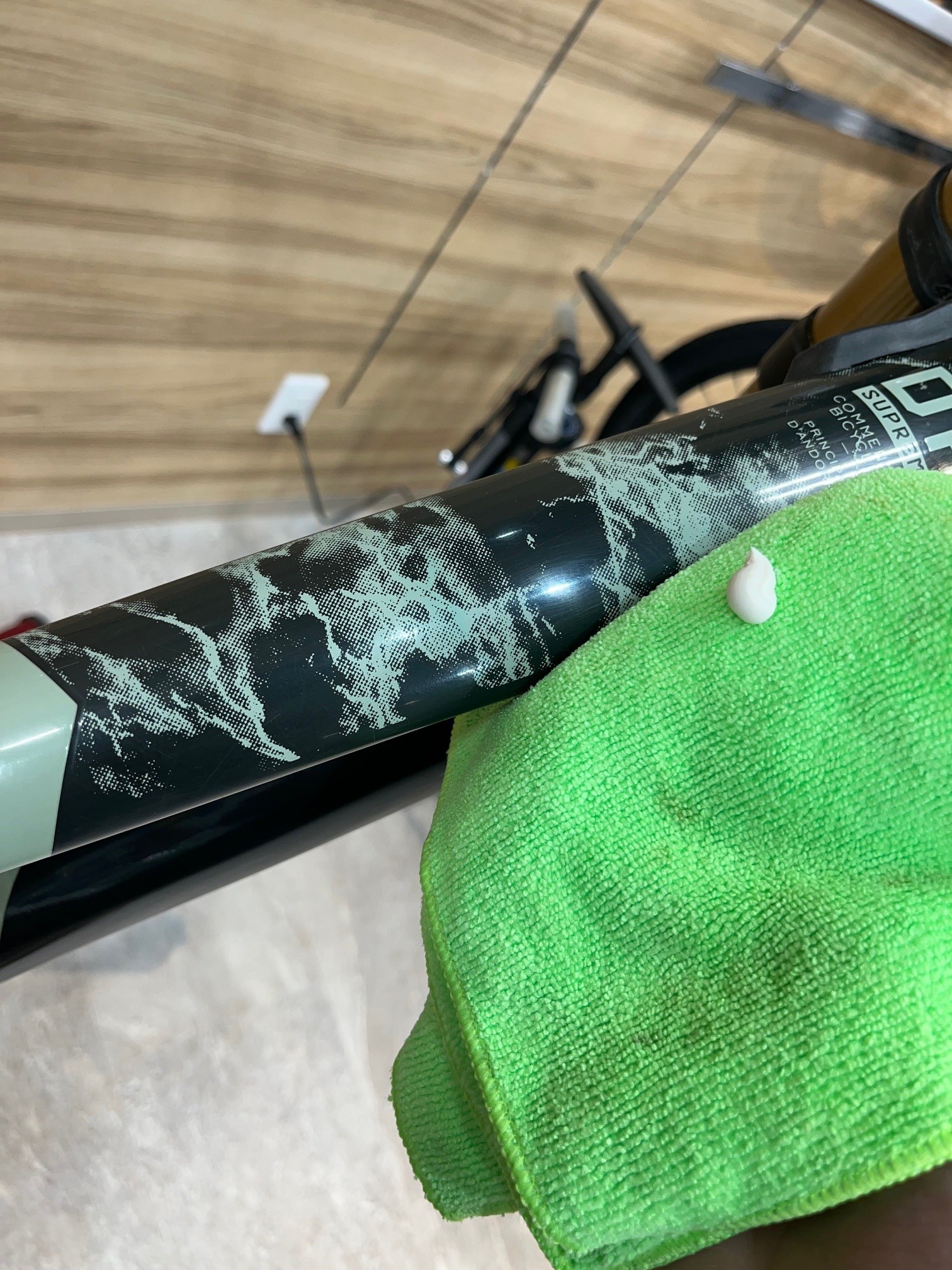 更に、簡単な汚れも落としてくれるので、フレーム表面の汚れがひどくない場合はこのゼロフィニッシュのみでかなり綺麗に仕上げることも可能です。