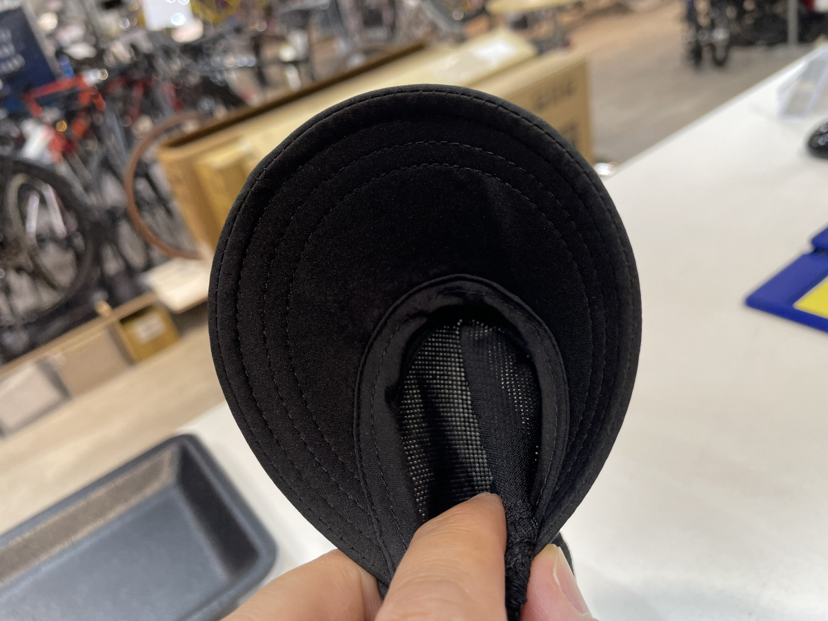 ベースボールキャップみたいなカッチリバイザーだとヘルメットと干渉して被りにくいと思いますが、この柔らかさ、ご覧ください。