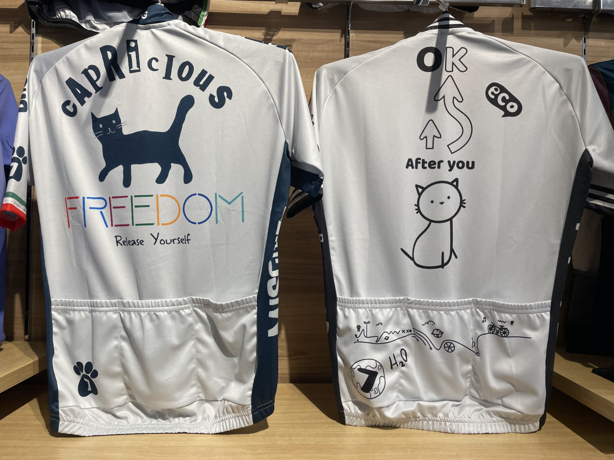 現状、各デザインの生産量が少ないので、逆に同じデザインのウェアを着ているサイクリストと出会いにくいのも魅力です。