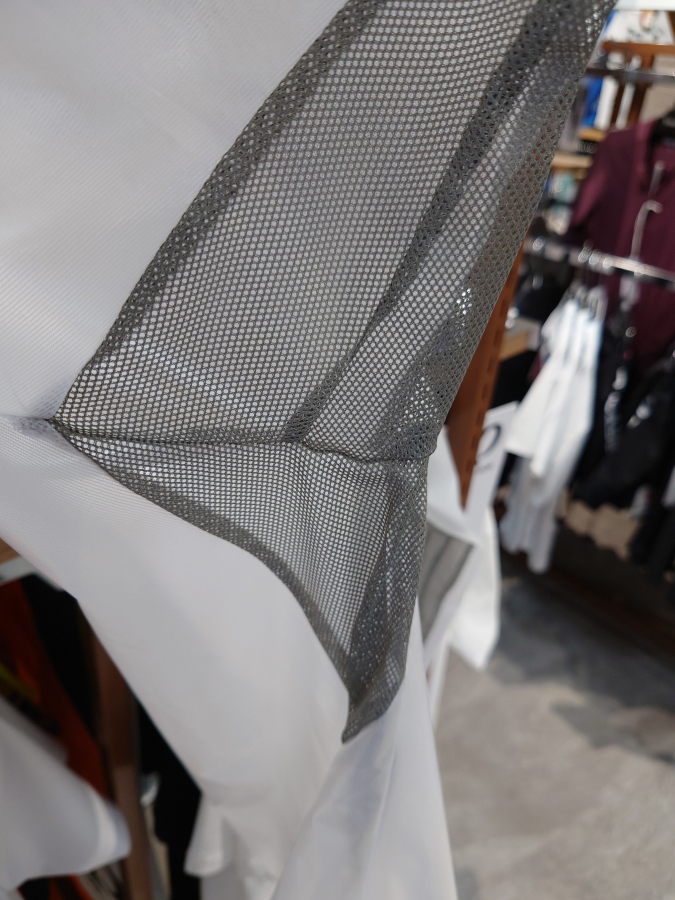 生地も透湿性のある防水生地ですので、運動時にぴったりな仕様です。首、脇周りもメッシュ加工になっており蒸れやべたつきの軽減に一役買っています。