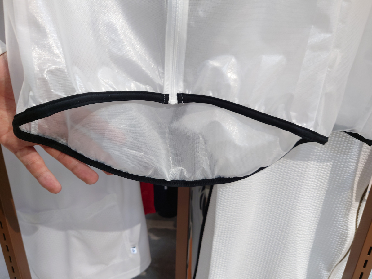 そしてバイクの乗車姿勢に合わせた生地の長さで、前傾時でもカバーできるようにロングテール仕様になっているのもスポーツバイク仕様で使いやすいです。