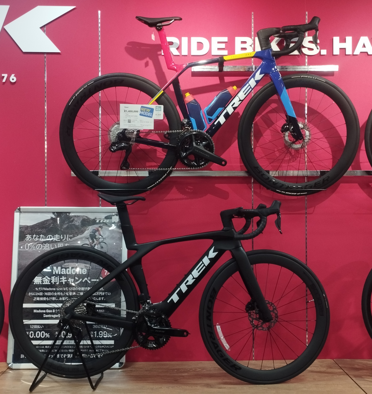 そんなカクカクしてて太くて速くてかっこいいMADONE SL6 GEN7 。定価より大幅に値下げしていますので気になる方は是非ワイズロード新橋店まで!GEN8も在庫していますので見比べてみて下さい!ご来店お待ちしております。