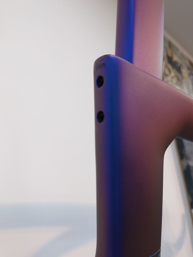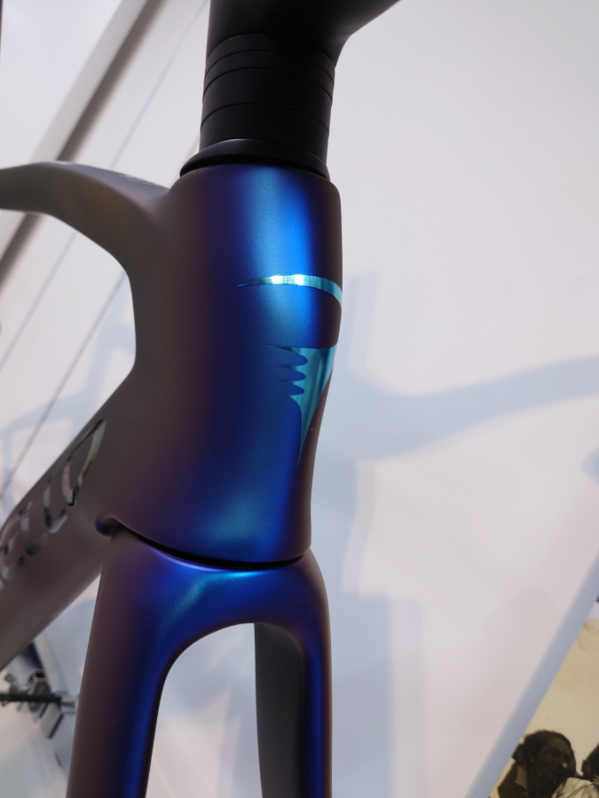 ヘッドチューブの幅を減らすためにヘッド回りのパーツが一新され、空力性能の向上と共に、軽量化に貢献しています。