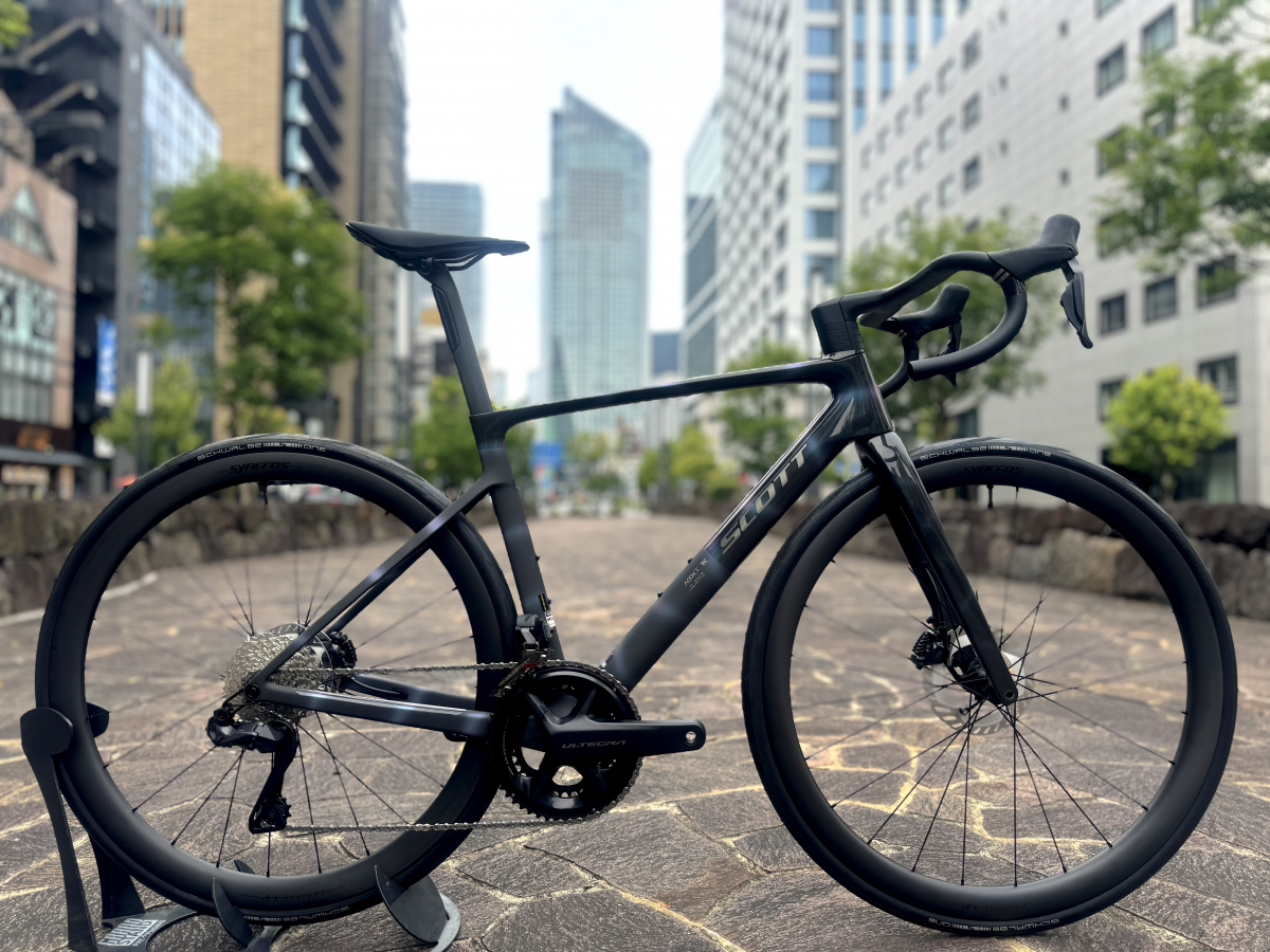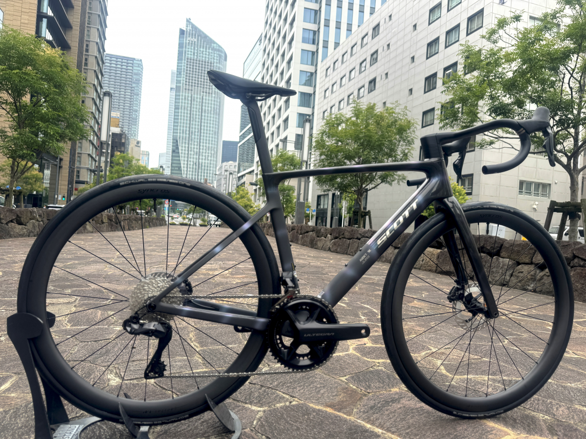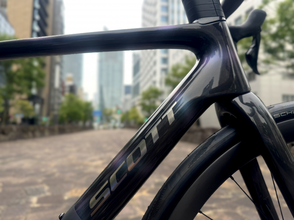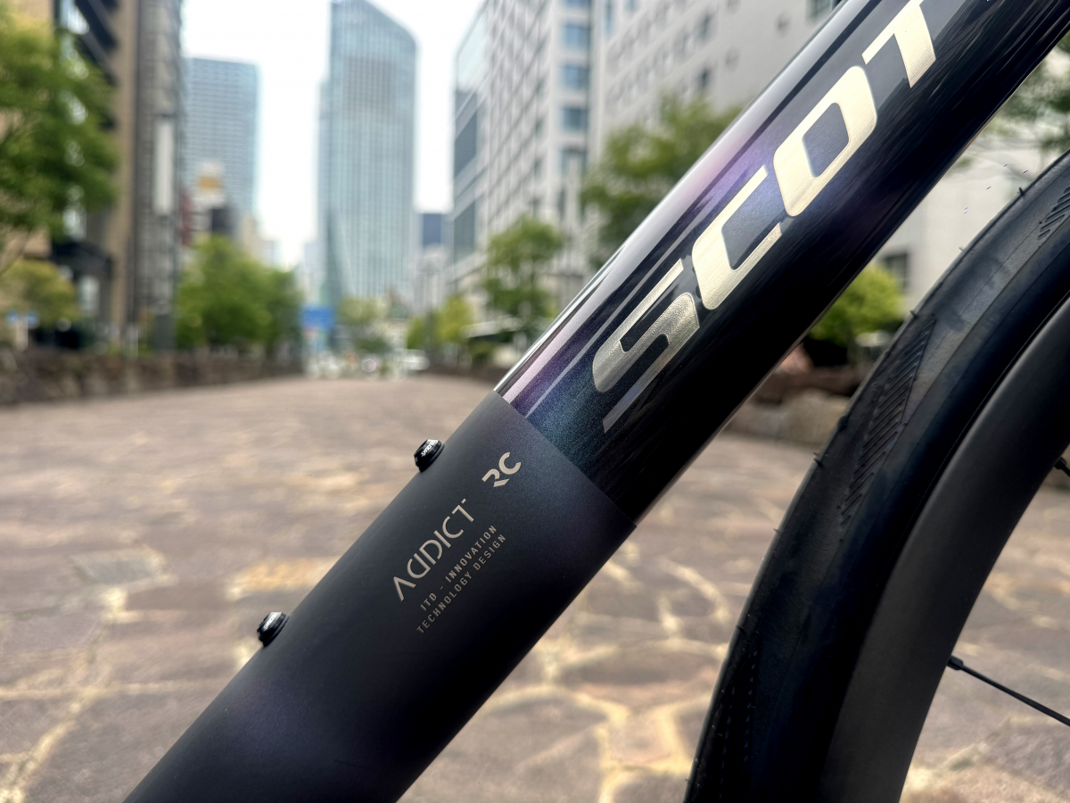 5.9kgという数値は2008年にSCOTTが発表した初代ADDICTと同じ数値なんです。リムブレーキが主流だった当時ですら5.9kgという重量はインパクトがありましたが、ディスクブレーキになりワイヤー類をフル内装。30cのタイヤにエアロダイナミクスまで追求したバイクが同じ重量というのは驚きを隠せません。