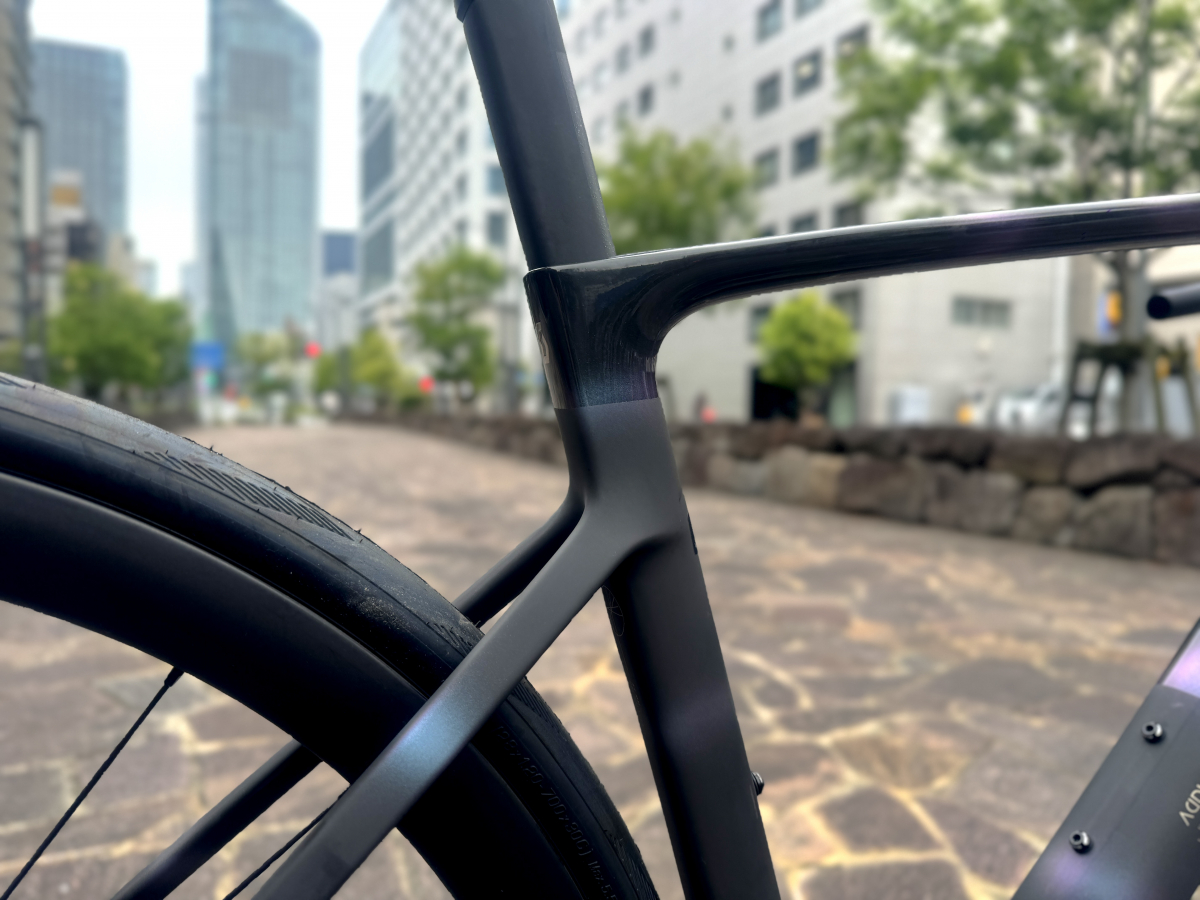 ヘッドチューブとダウンチューブの接合部やシートチューブとシートステーの接合部はFOILの面影を感じますね。