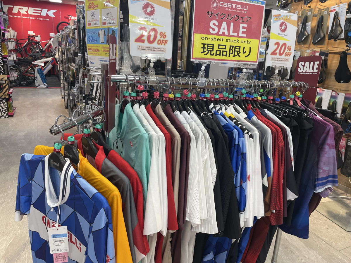 サイクルウェアコーナーでは、人気のお買い得アイテムがさらに追加されました。