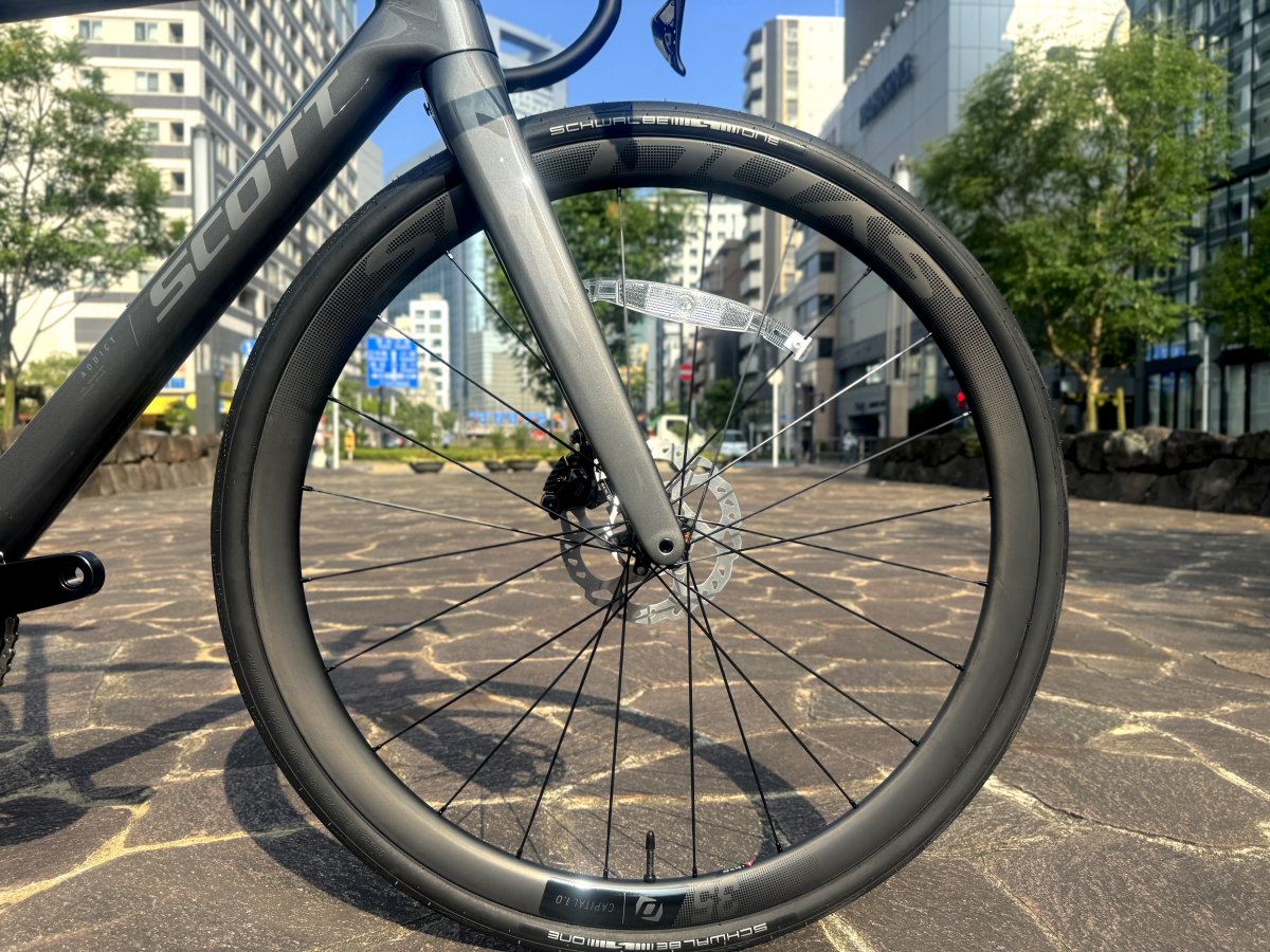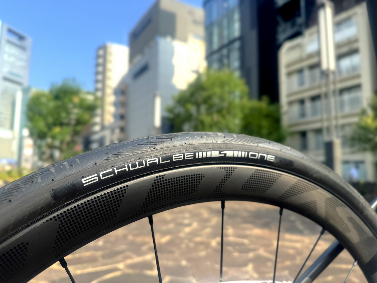 タイヤはなんとシュワルベのONEという高性能なタイヤが付いています。サイズは32cとわりと太めになっています。