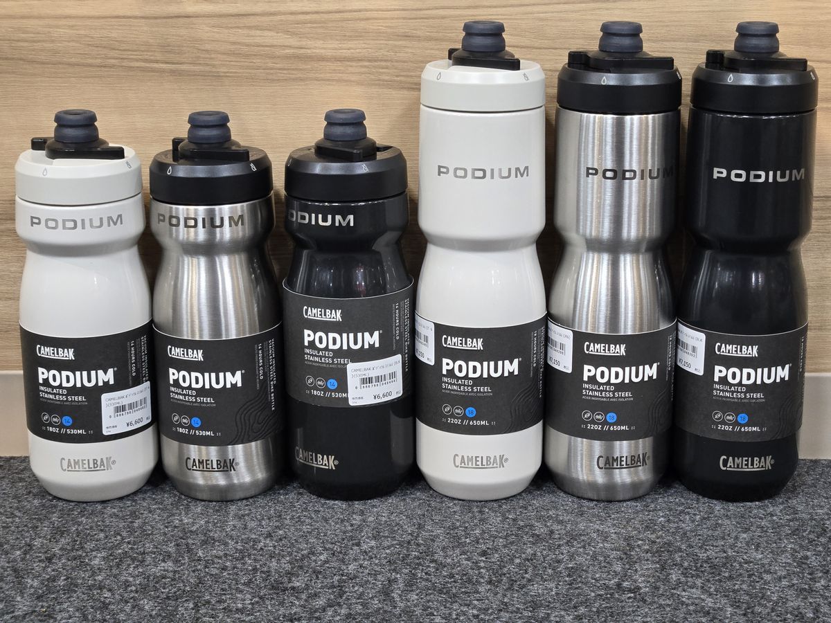 真空断熱構造(いわゆる魔法ビンと同じ構造)で圧倒的な保冷性能を誇る「PODIUM STAINLESS」もサイズ、カラーを各種在庫しています。