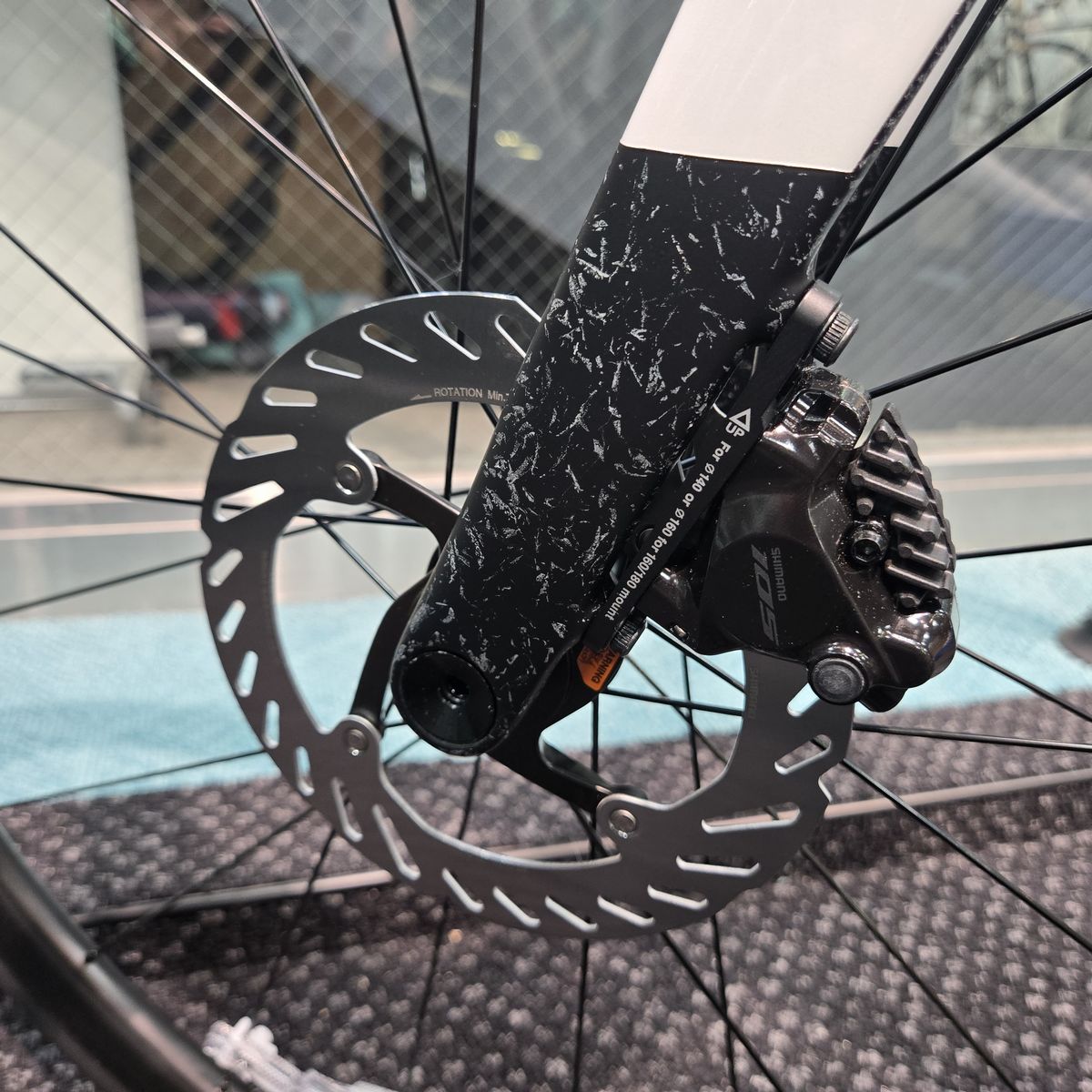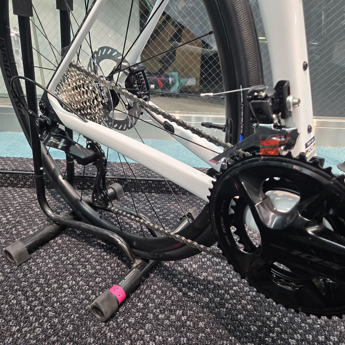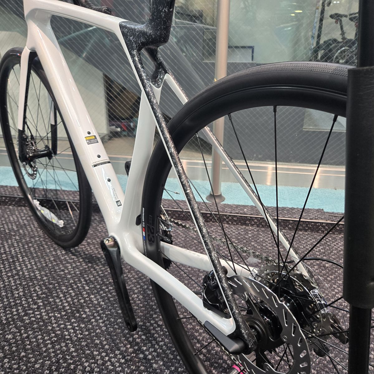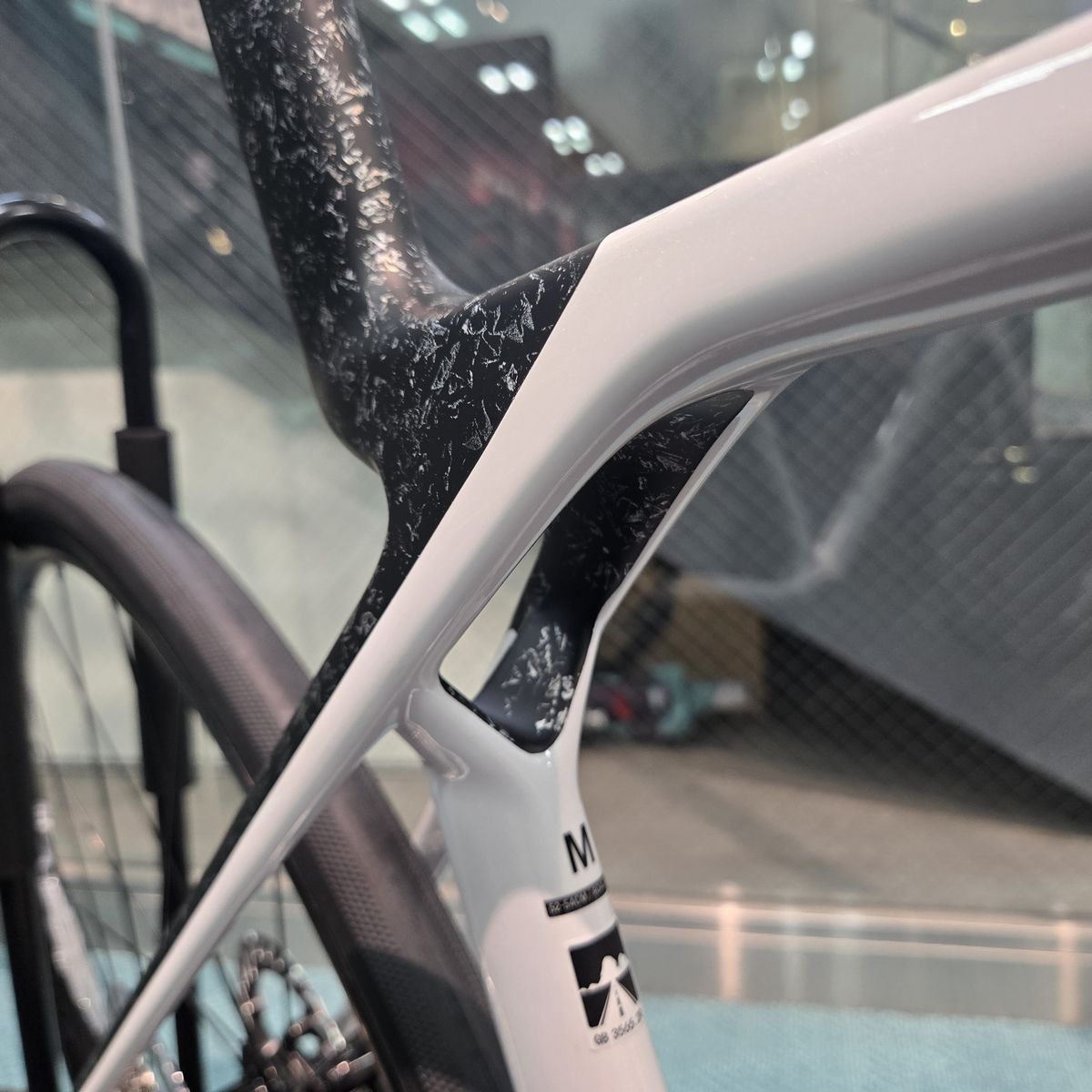 ベースカラーはホワイトなのですが、特徴的なのはフロントフォーク先端部と、シートチューブ上部からシートステー後ろ側にかけてのペイントです。