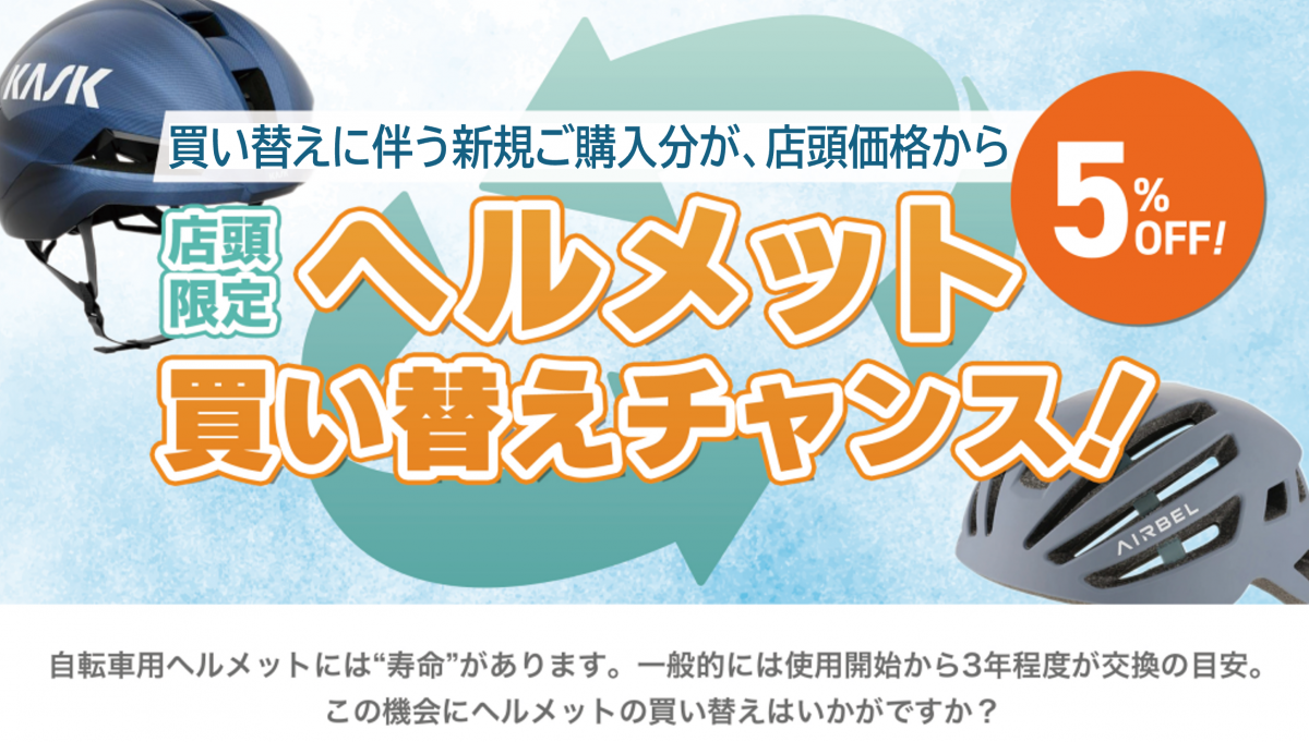 なお期間中、ご自分のヘルメット買替えに伴うご購入の場合、新規ご購入分については「ついている価格から5%割引」いたします!