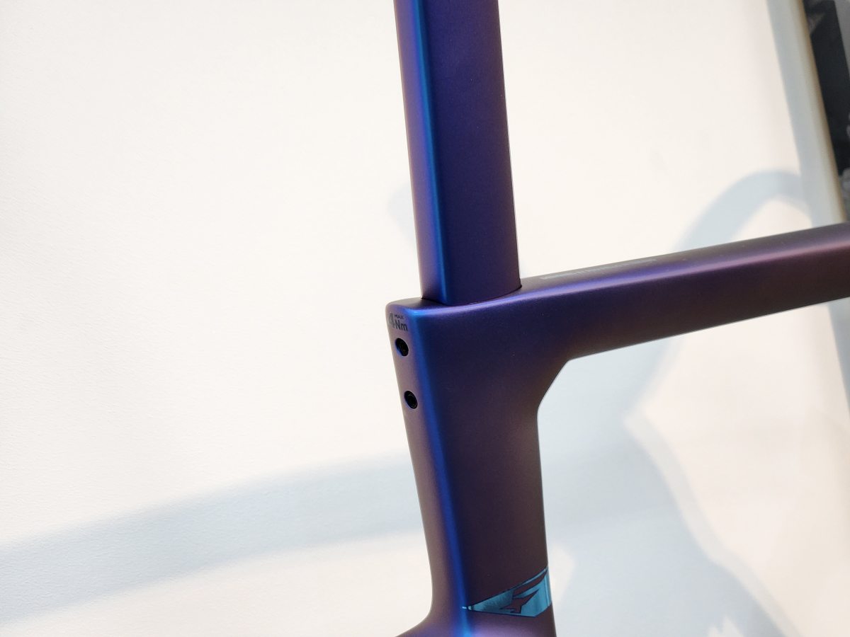 旧型のDOGMA Fよりもヘッドチューブの幅が8mm細くなり空気抵抗、重量ともに改善されています。