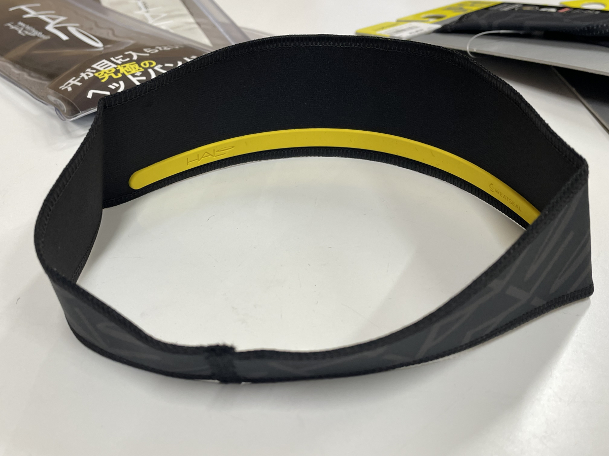 バンドの内側下部に貼りついている黄色のパッド(スウェットシール)が、頭部から額に流れ落ちてくる汗をブロック。