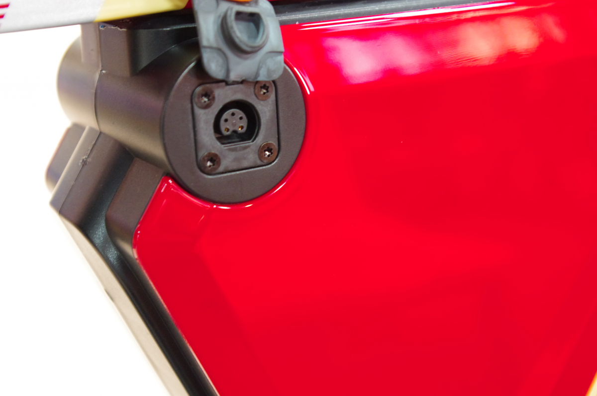 充電器用のコネクタは右側に移り、防水キャップも付きました。充電器はバッテリーに優しいスマートチャージャー(0~80%は速く、80~100%はゆっくり充電して負荷をかけない)を採用。