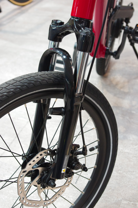 前後サスペンションで小径車ながらも滑らかなで快適な乗り味。サスペンションの沈み込みによるロスはアシストが打ち消してくれるので気になりません。