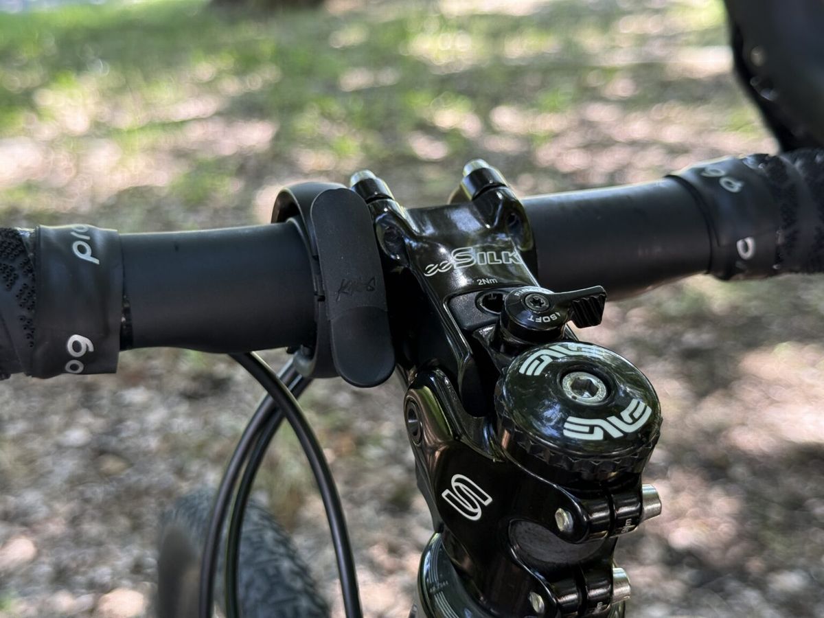 取付例。目立ちすぎずハンドルになじんでいます。