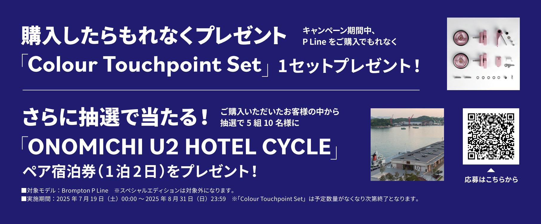さらに、購入者の中から抽選で5組(合計10名様)に、「ONOMICHI U2 / HOTEL CYCLE」のペア宿泊券(1泊2日)をプレゼント!