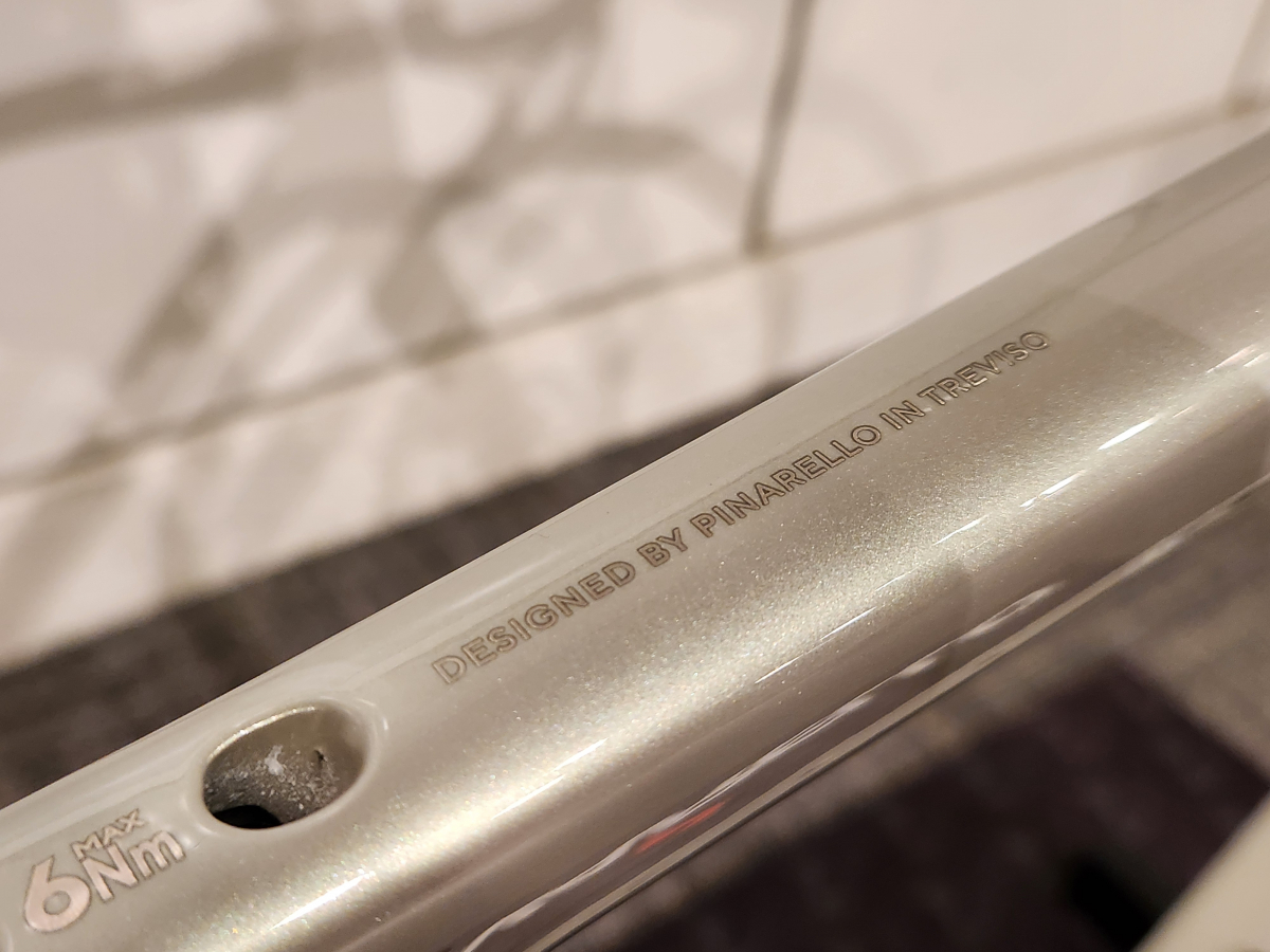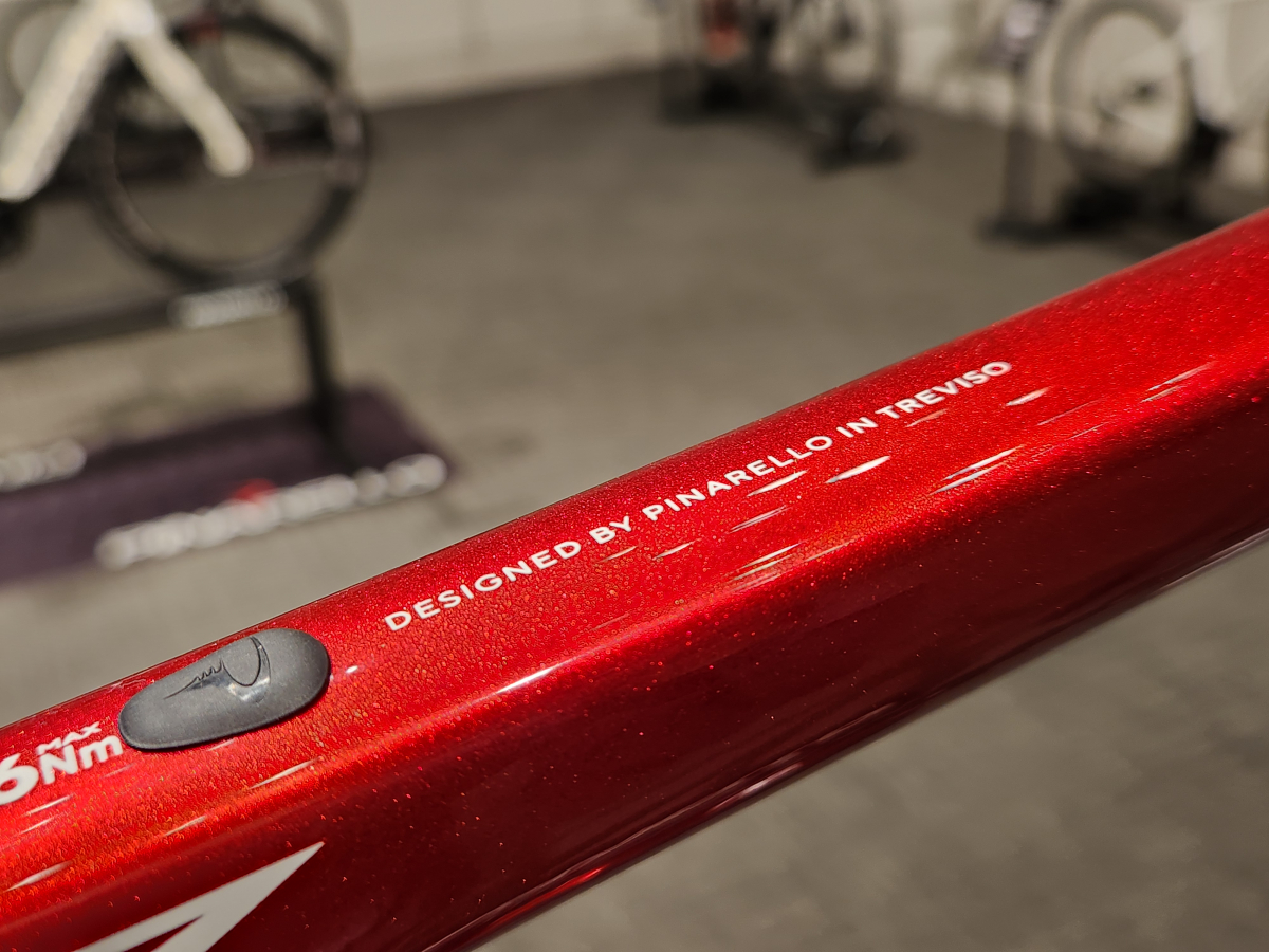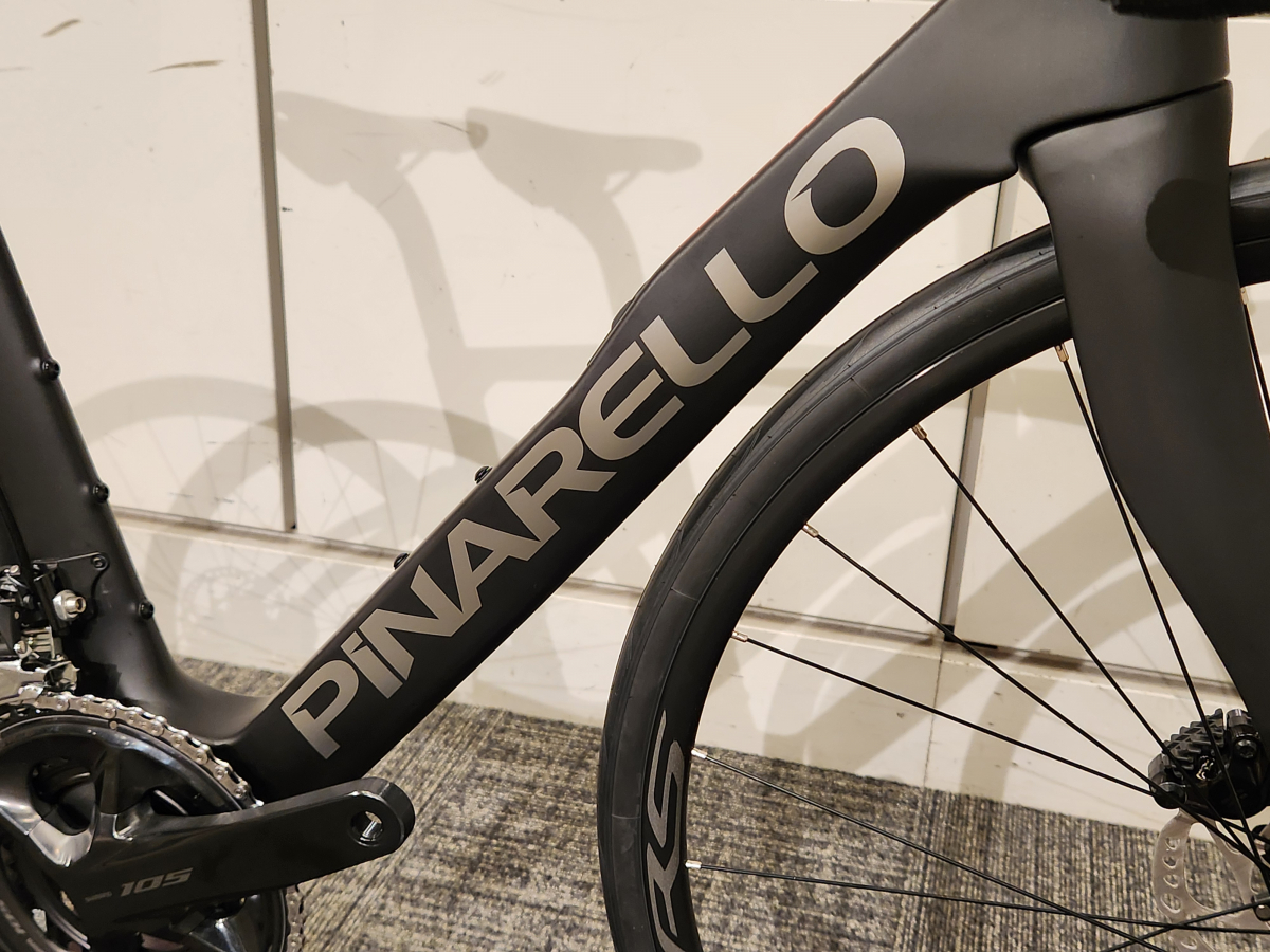 グレードとしては一番下になりますが、グレード関係なくPINARELLOブランドを感じ取ることができる高級外車のようなカラーリングになっています。 20250618_110658