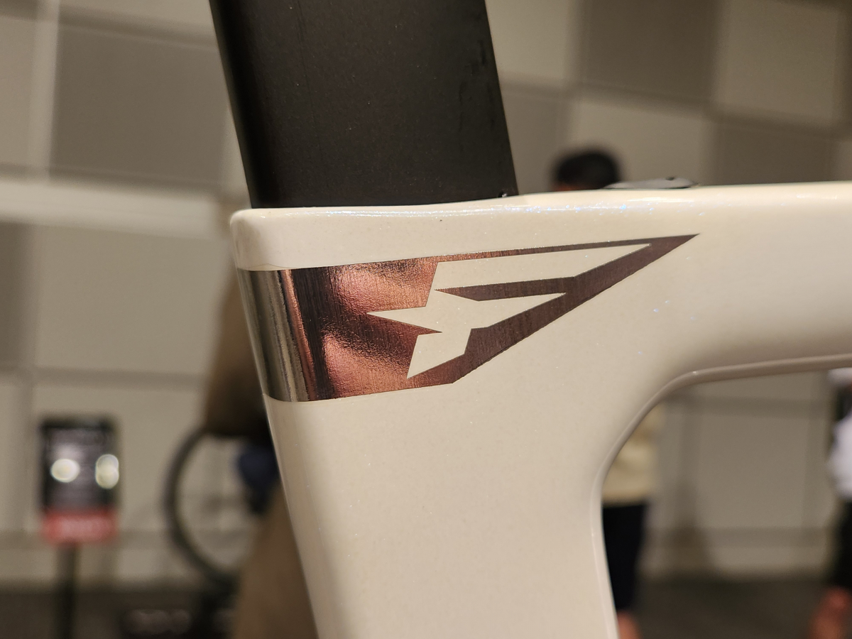 『F7』にもダウンチューブ上部とリアトライアングル、フォークの内側部分のみ別のカラーをさりげなく見せる『EDGE』という現行の『DOGMA F』に多く使用されるペイントスキームと近い配色となっており、洗練された仕上がりになっています。