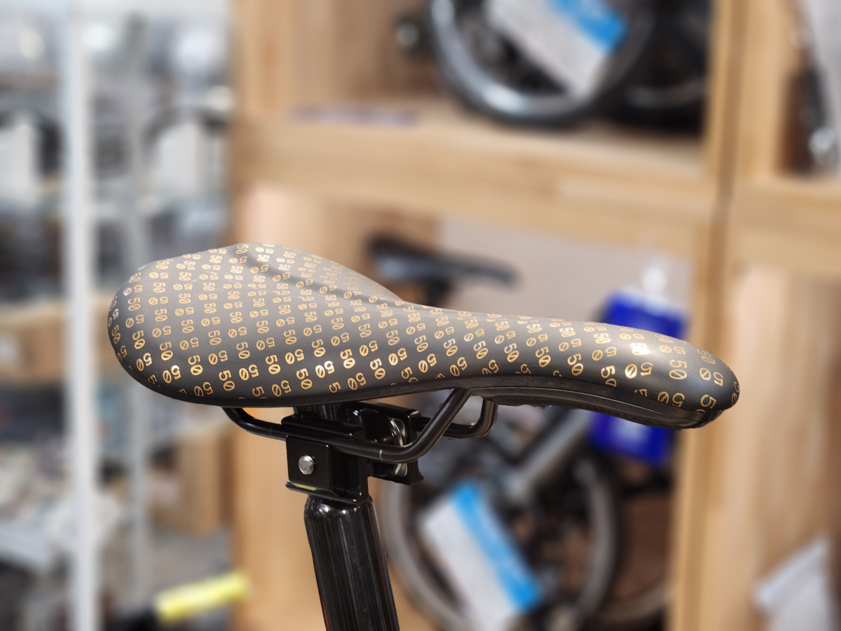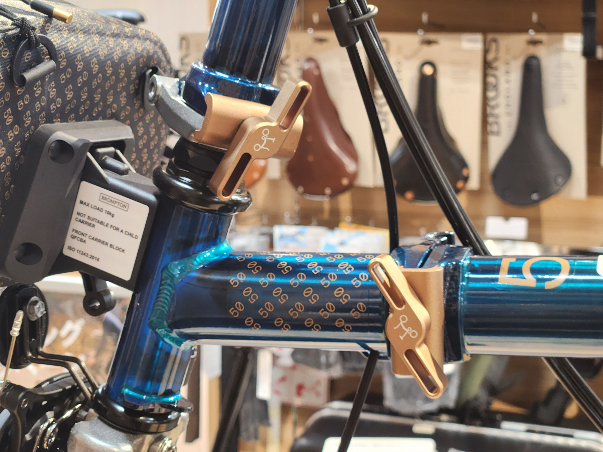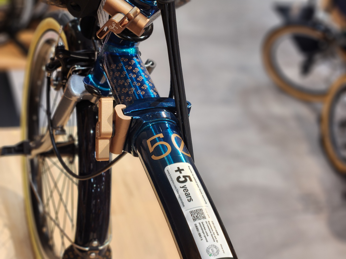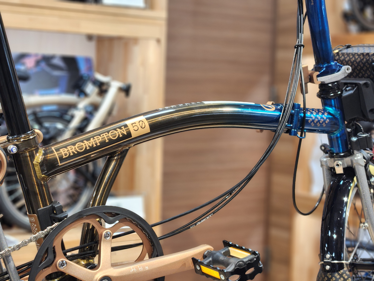 フレームから細かいパーツに至るまで、BROMPTON50周年に相応しい特別仕様になっています。