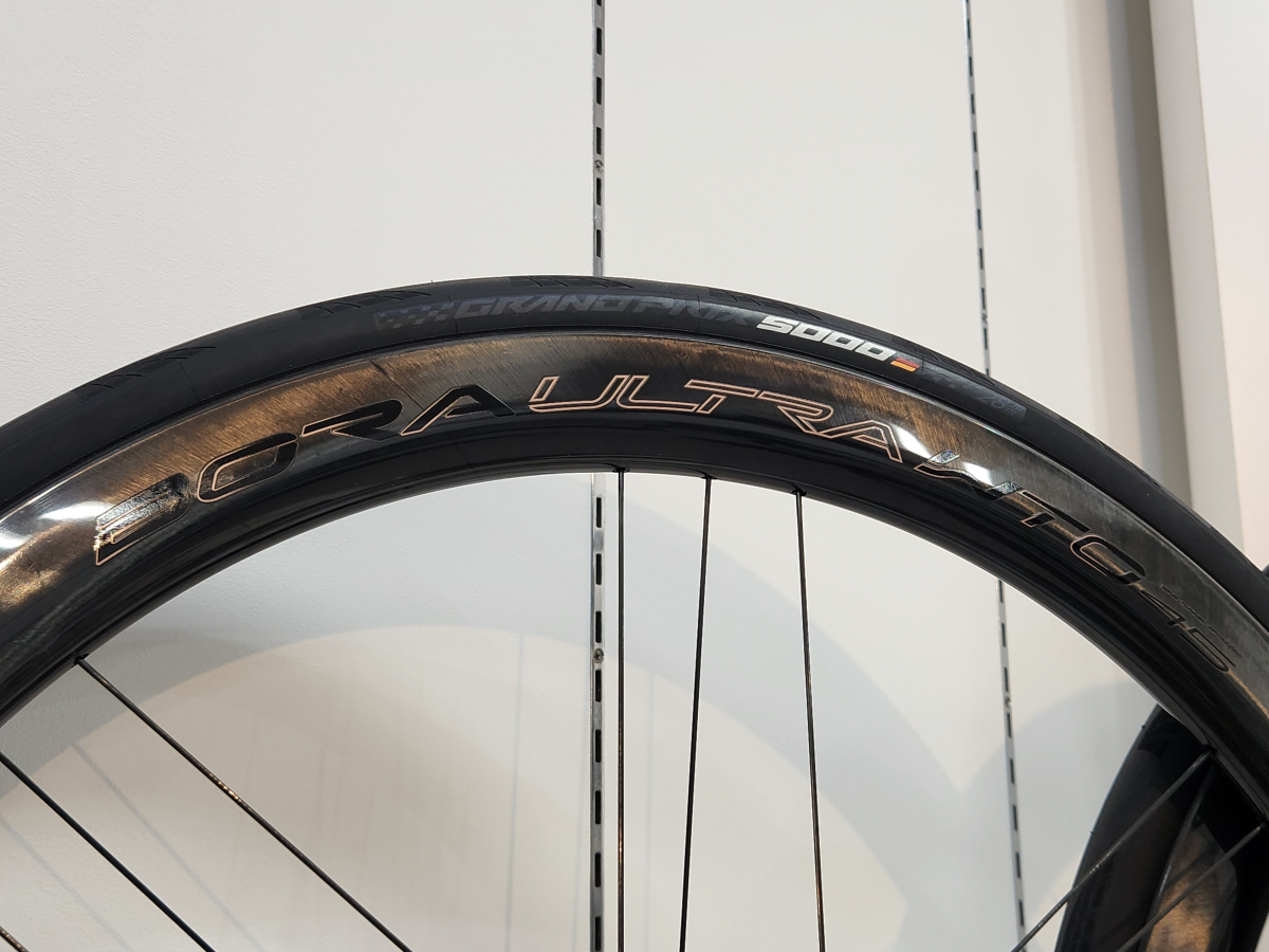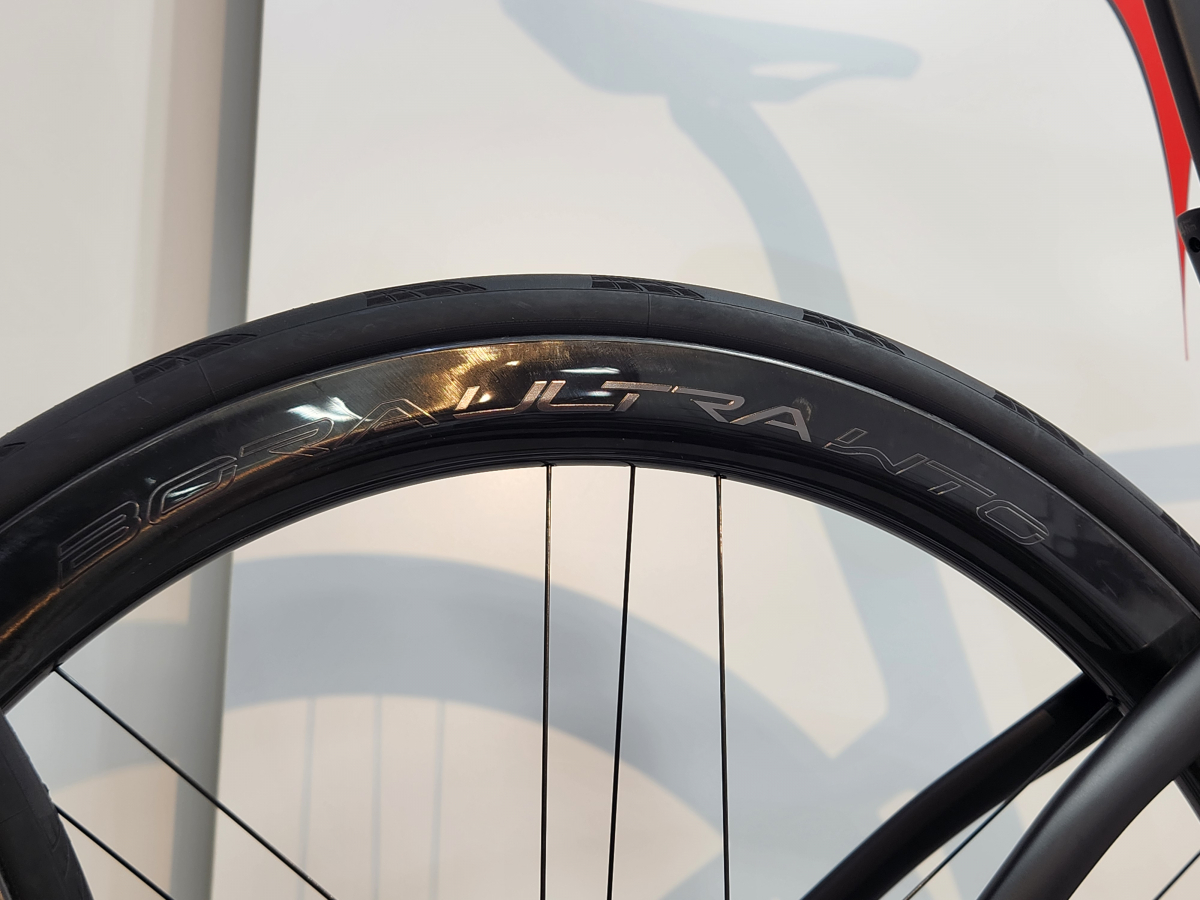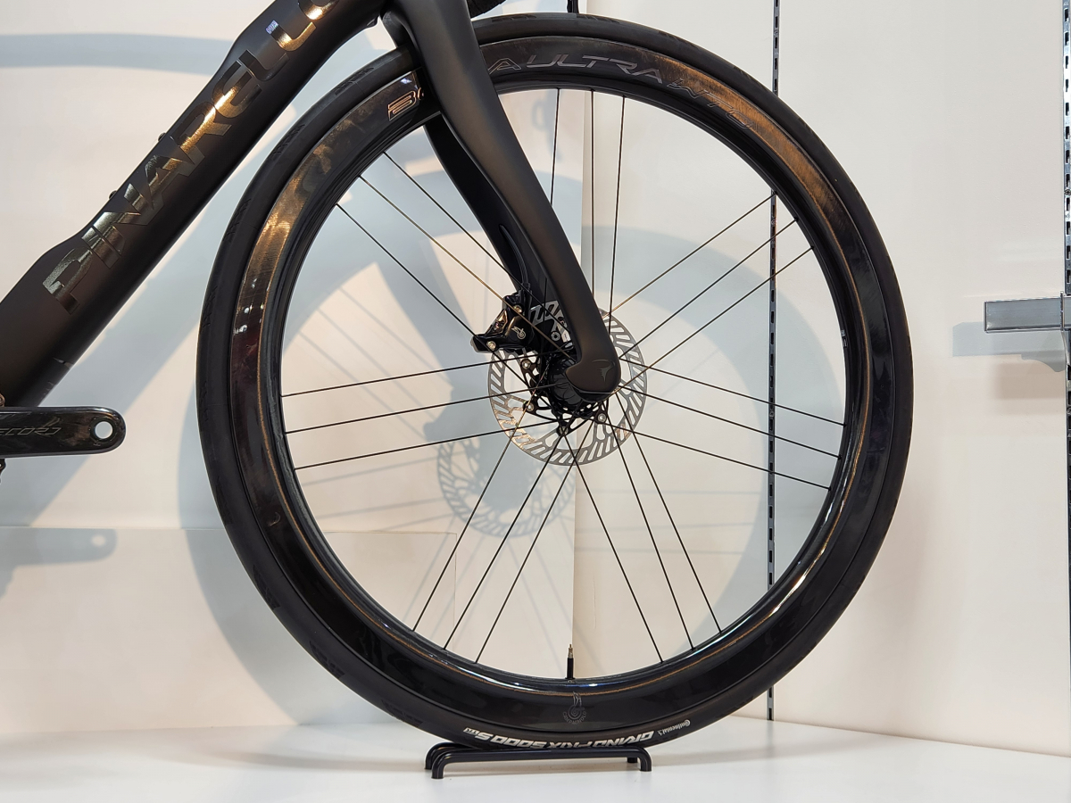 この限定車のために用意された特別カラーのフレームに、コンポーネントはもちろん『CAMPAGNOLO Super Record WRL 13s』、ホイールにはフレームに合わせて特別ななペイントが施された『CAMPAGNOLO BORA ULTRA WTO 45』を搭載した究極の一台になっています。