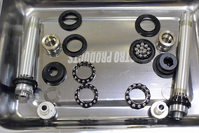 カンパ・シマノはカップアンドコーン式ベアリングで、ベアリングの玉や受けを清掃して再利用できるのが特徴です。