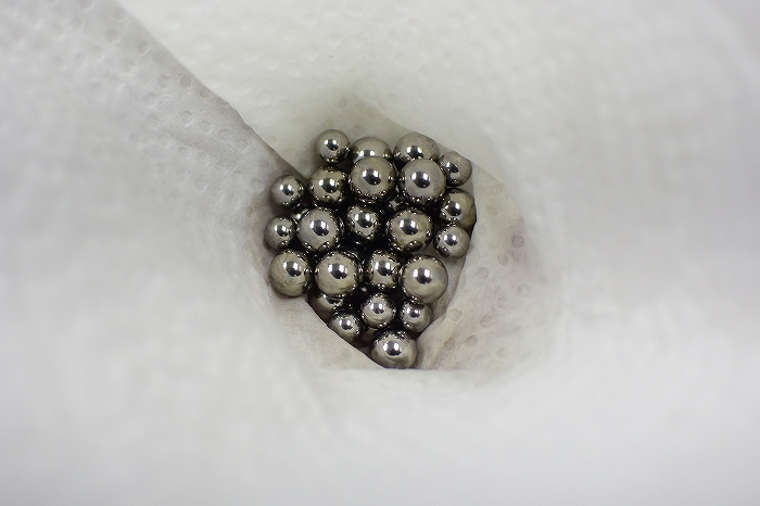 清掃後のベアリング。ベアリングの玉が露出しており、清掃できるのが特徴。