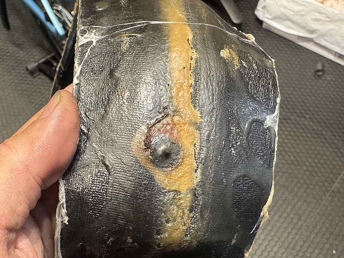 中央がパッチ修理した部分。