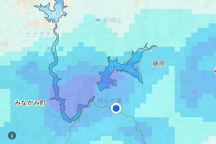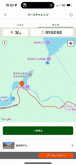 せっかくダムの上まで来たのに距離が離れていてチェックインできない!!