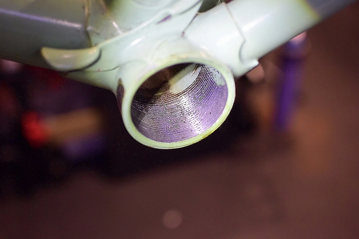 丁寧な工房ではぶつかる部分を削り落としますが、このフレームはぶっさしてへこませています!