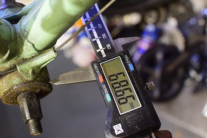約68mmなのでJISでしょう。規格によってネジの向きが違うので古いバイクは要注意です。