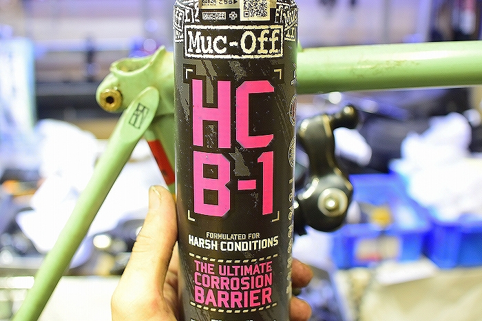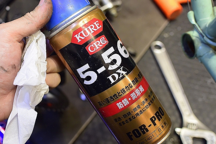 フレーム内部やサビやすいパーツは再びサビないようにオイルで防錆コーティング。