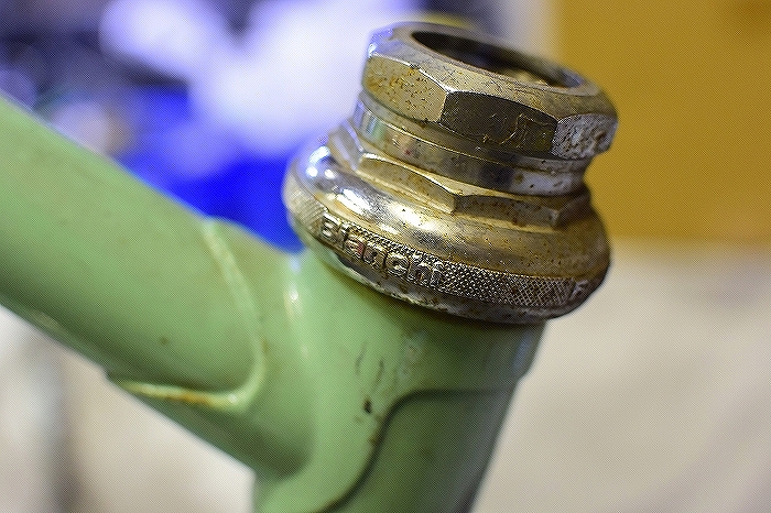 ヘッドはサビてしまっていますがビアンキロゴ入り