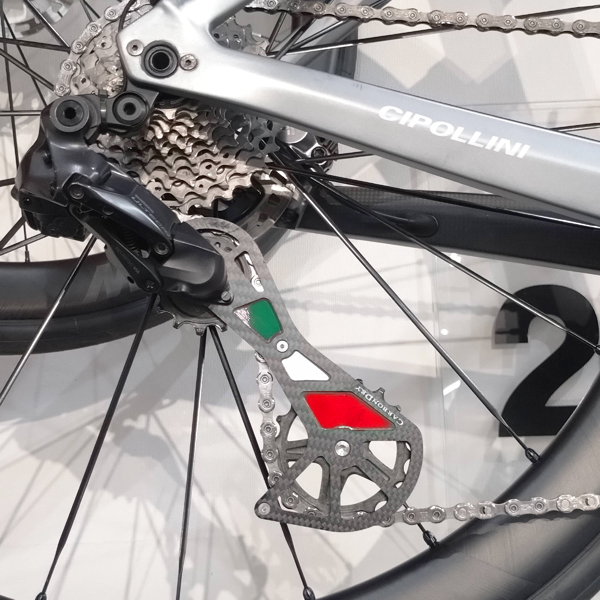 テンション、ガイドプーリーがさらに大きくなり、チェーンの折り曲がりが少なくなることでチェーンの駆動抵抗を今まで以上に低くなるように設計。
