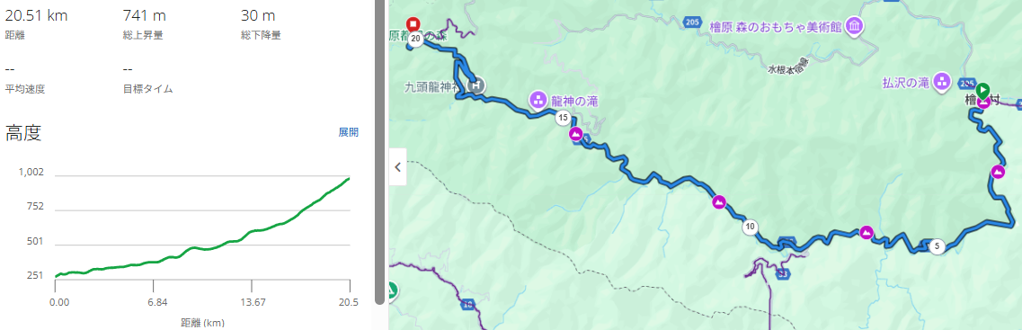 距離約21km、獲得標高約750mのコース。
