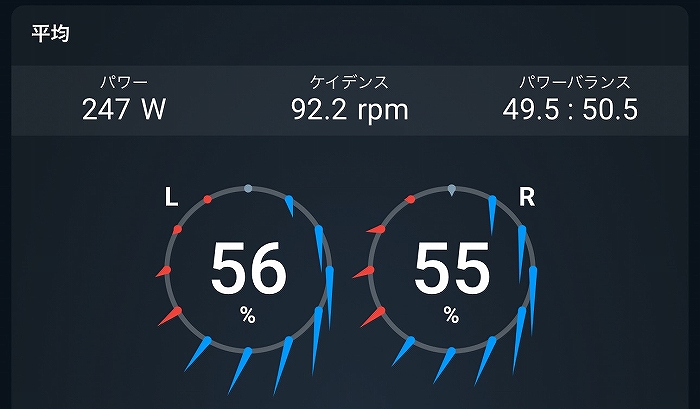 パワーバランスは痛めた左足の方が0.5%低かったものの、ペダリング効率は感覚より悪くなさそうに見えます。