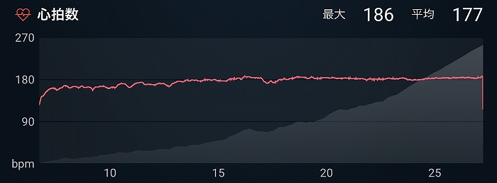 心拍数は中盤からずっと180できつかった!